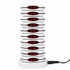 The paging system has multiple reminder modes, including vibration, buzzer, and flashing light. It also has a one-button mute, one-call-off, and charging reminder features. The system can support up to 998 pagers, and multiple keyboards can call the same pager. It also has a built-in magnet for more reliable charging and an anti-dumping bracket to avoid scattering.
