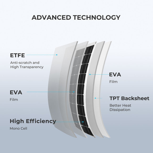 Lightweight, thin, and capable of flexing up to 248 degrees, this Renogy 100W Flexible Solar Panel is your perfect solution for a power-independent journey! Ideal for RVs, campers, boats, and many other applications, it offers unmatched versatility and ease of installation.