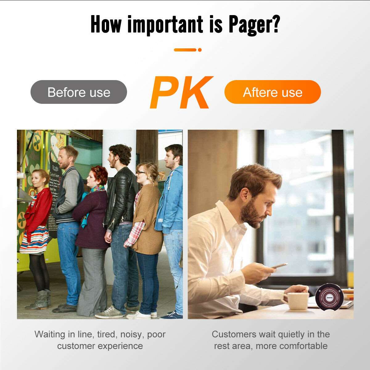 pager is made of high quality PC. Sturdy and durable resistance to fall