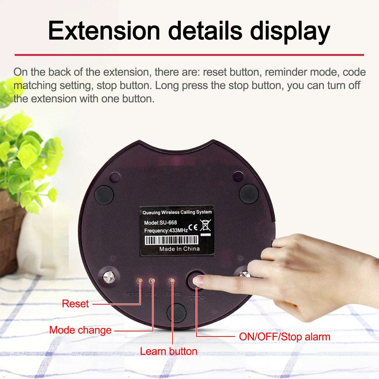 This wireless queuing system set consists of one 999-channel keypad wireless calling button base and 10 pcs wireless coasters. The keypad call can send 999 different codes by combination from digits 0-9. The queuing system greatly improves the work efficiency and avoids the client waiting in a long queue. So it is widely used in fast food restaurant, food court, pizza shop, church and auto shop or other places where there are many guests waiting for their services.