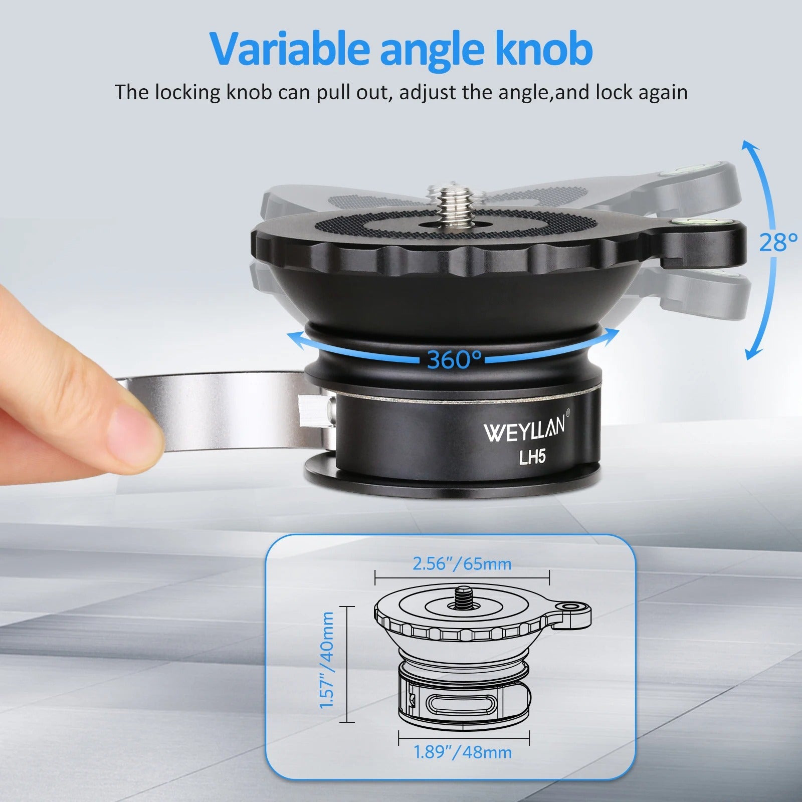 Specifications: Material: Aluminium Alloy Load Capacity: 15kg Adjustment Speed: 3s Compatibility: Canon, Nikon, Sony DSLR Cameras Design: Leveling Base Head Size: 47mm Bottom Diameter, 3/8" Thread Hole Features: |Peak Design Monopod| **Robust Construction and Versatile Compatibility** The Weyllan Tripod Head LH5 is a testament to durability and versatility. Crafted from high-grade aluminum alloy, this tripod head is designed to withstand the rigors of professional photography and videography. Its robust construction ensures a maximum load capacity of 15kg, making it suitable for a wide range of DSLR cameras, including Canon, Nikon, and Sony models. The tripod head's compatibility with various mounting plates types, including peak design aluminum travel tripods, neewer gimbal heads, and manfrotto tripod attachments, makes it a versatile addition to any photographer's gear. **Effortless Balancing and Quick Adjustments** The LH5's standout feature is its 3s fast adjusting plate, which allows for quick and precise horizontal adjustments. This feature is particularly useful for capturing panoramic shots or when shooting in challenging environments where stability is crucial. The leveling base head design ensures that your camera remains steady and level, even on uneven terrain. The tripod head's lightweight design, combined with its robust aluminum construction, makes it an ideal choice for photographers who value both strength and portability. **Designed for the Professional Photographer** The Weyllan Tripod Head LH5 is not just a piece of equipment; it's a tool designed for the professional photographer. Its top 1/4" screw is compatible with a wide range of ballheads, fluid heads, z flex heads, and gimbal heads, providing photographers with the flexibility to adapt to various shooting scenarios. The tripod head's 47mm bottom diameter and 3/8" thread hole ensure compatibility with most tripods and monopods, making it a reliable and adaptable accessory for any photographer's kit. Whether you're shooting in the studio or on location, the LH5 is the perfect companion for capturing stunning images.