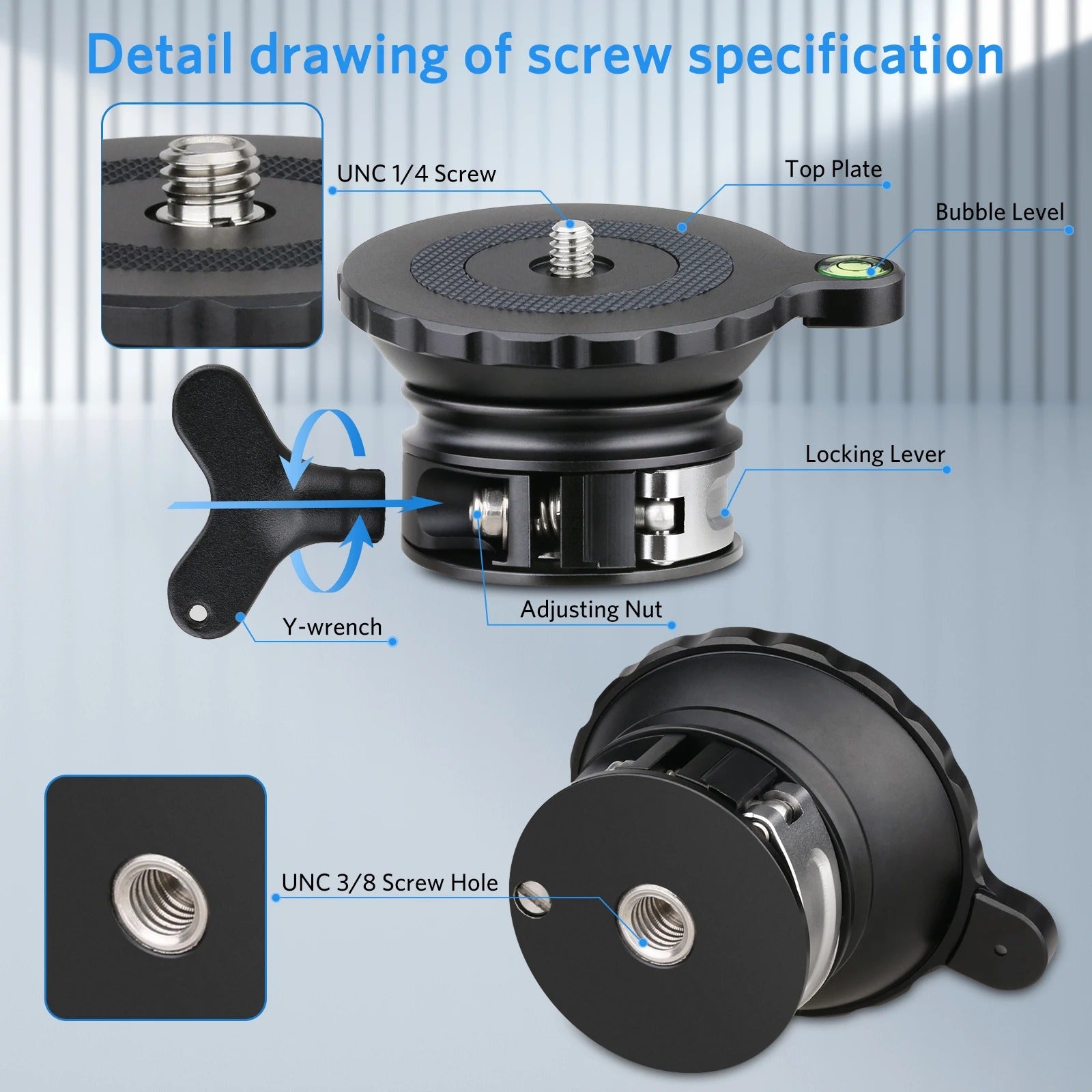 Weyllan Tripod Head LH5 Tripod Leveling Base 3s Fastly Adjusting Plate Horizontal Adjustment for Canon Nikon Sony DSLR Camera
