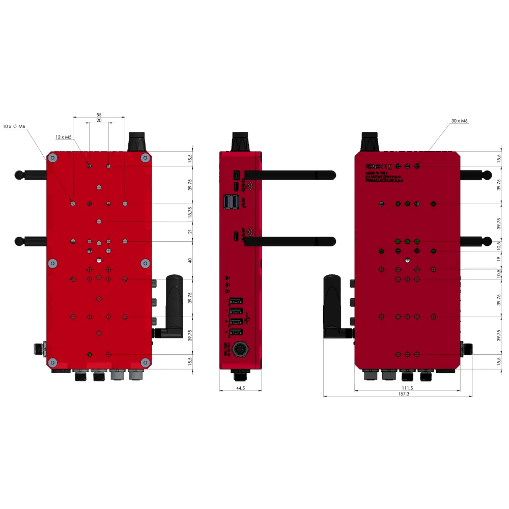 EAGLE5 XTM includes all these advanced features in an aluminum, lightweight, compact all-in-one chassis designed to be installed on your telescope in the way you prefer. This way you can connect all the USB and 12V power cables from your devices to the EAGLE greatly improving your cable management. The EAGLE5 XTM weights just 1.38 kg (3 lbs). In the picture you can see all the dimensions with positions of M6 and M5 threaded holes to connect rings, bars and clamps.